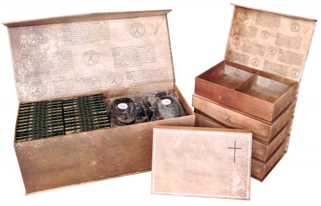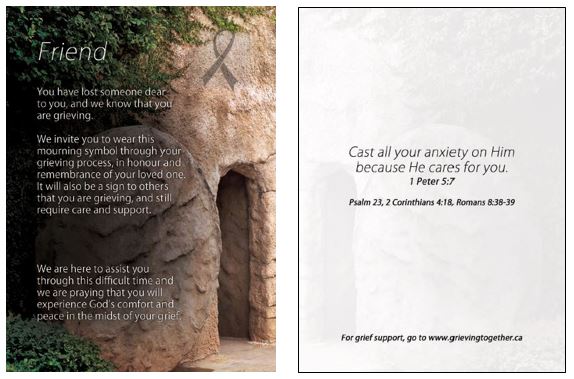 This box set is designed for churches to use in supporting those who are grieving, as they come along side individuals walking through a journey of grief. The box provides 50 mourning pins on cards, 25 adult mourning bracelets, and 25 youth mourning bracelets. The set also includes 5 small empty boxes which can be used to present a family with the appropriate number and type of mourning symbols. Not only do mourning symbols allow the wearer to express their loss, they also acknowledge that each and every life should be remembered for what it was - a wonderful work of God.